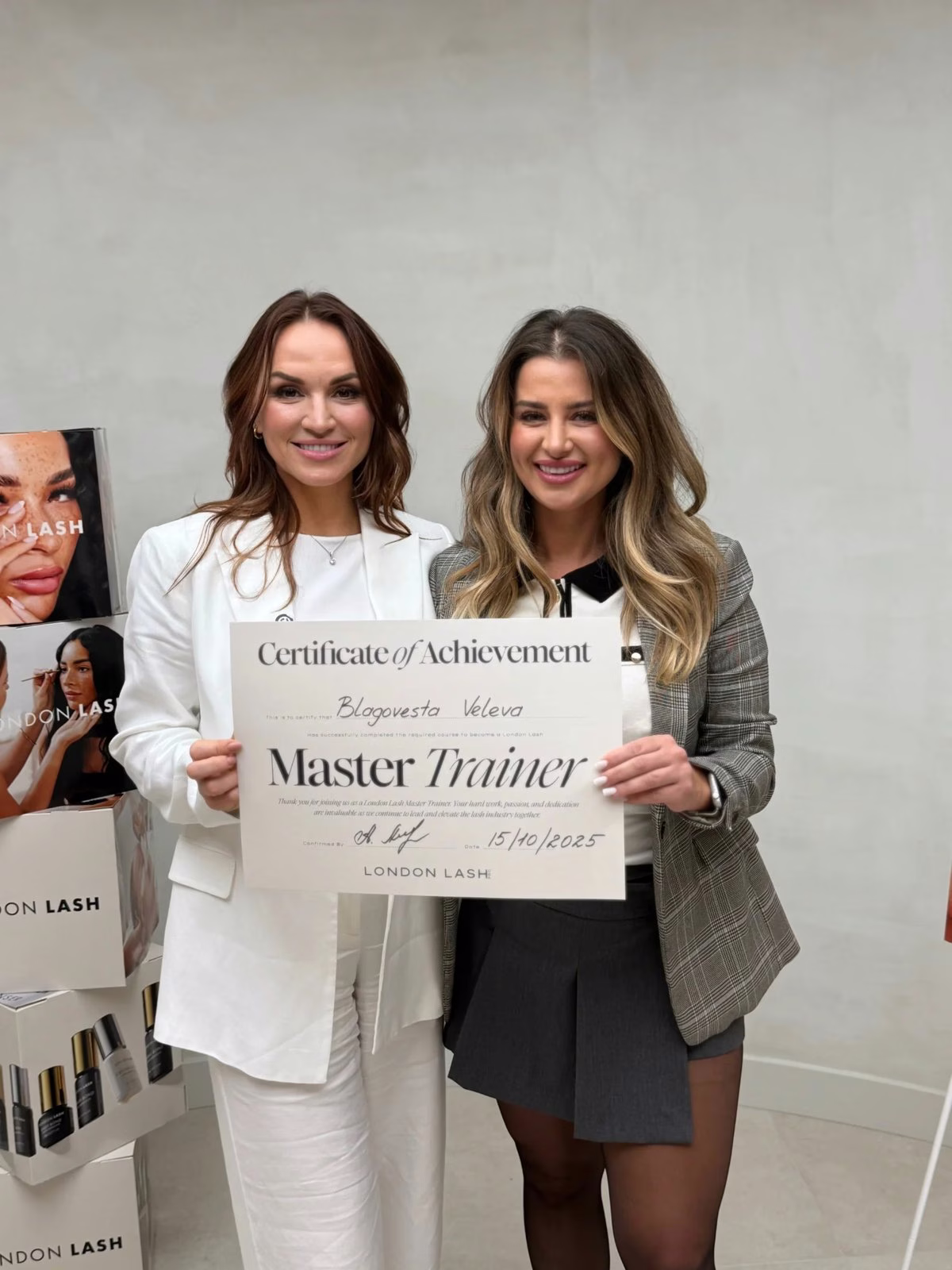 Soy Blagovesta Veleva, Master Formadora Internacional de London Lash Pro y creadora de Farasha Lash, un espacio dedicado a realzar la belleza, la confianza y el crecimiento profesional de mujeres de todo el mundo.